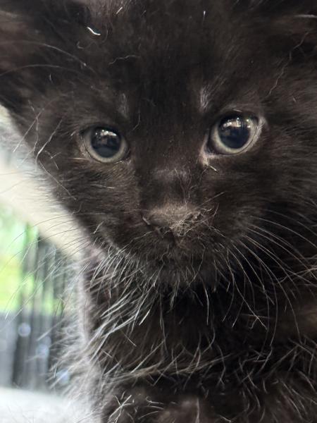 Thin Mint is a sweet and energetic kitten. They are one of the two black kittens in Dolly’s litter (their sibling has more visible gray) but there are traces of some tabby stripes. Thin Mint is very energetic and loves doing zoomies with the others during free play time. They’re also a great climber and love having a high vantage point to watch over things.